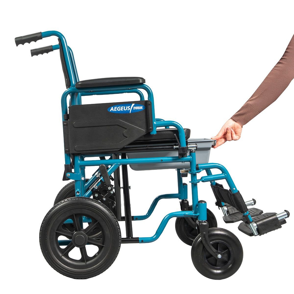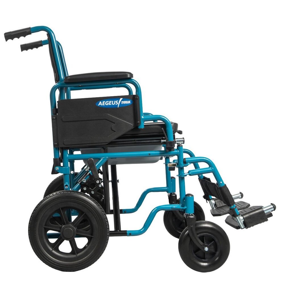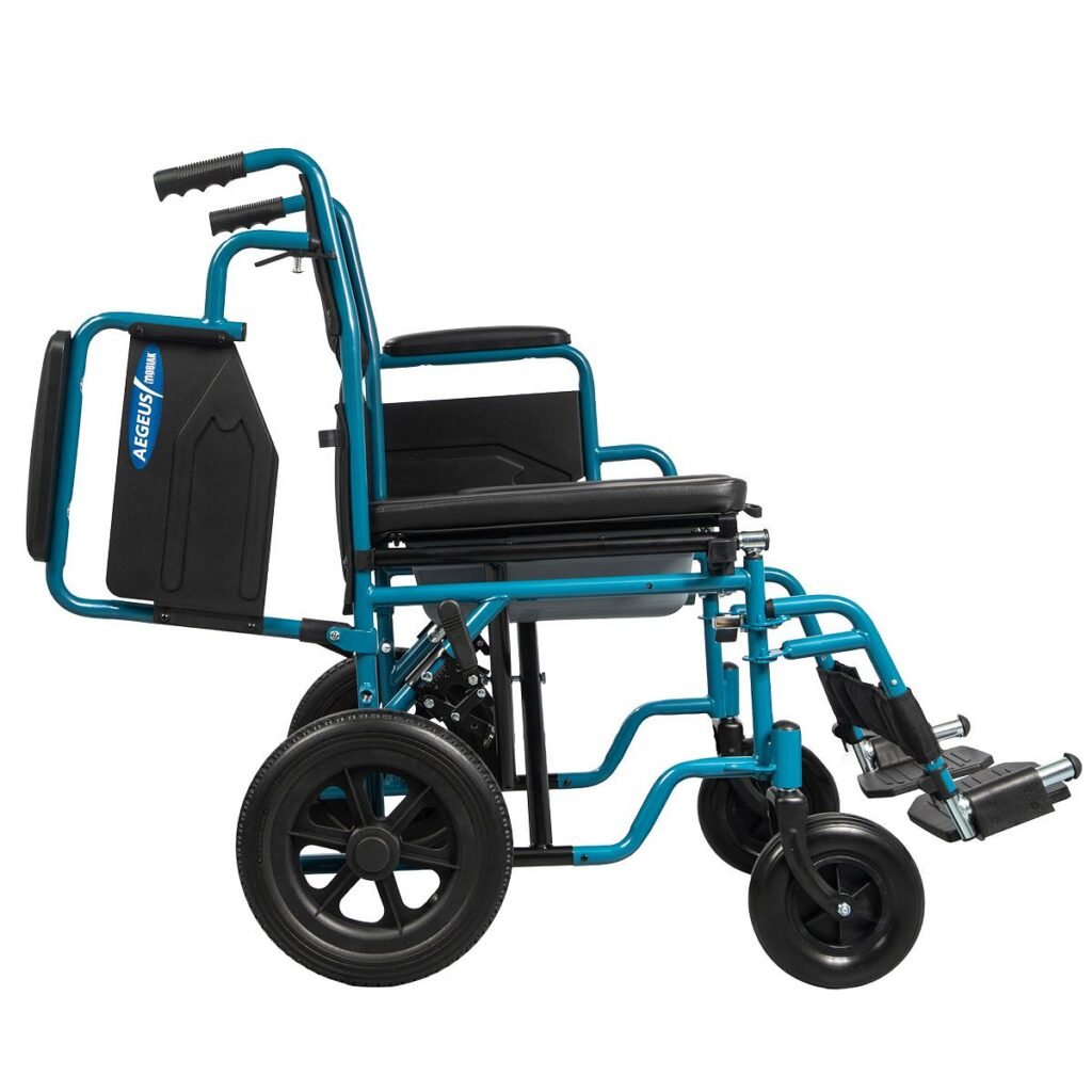 Το αναπηρικό αμαξίδιο “AEGEUS” έχει σχεδιαστεί για τη μεταφορά ατόμων , προσφέροντας στήριξη και ευκολία στην καθημερινή μετακίνηση. Είναι κατάλληλο για άτομα με κινητικά προβλήματα ή περιορισμένη κινητικότητα και μπορεί να χρησιμοποιηθεί με τη βοήθεια συνοδού. Χρησιμοποιείται επίσης και ως κάθισμα τουαλέτας, διευκολύνοντας την προσωπική υγιεινή, ιδιαίτερα σε εσωτερικούς χώρους.