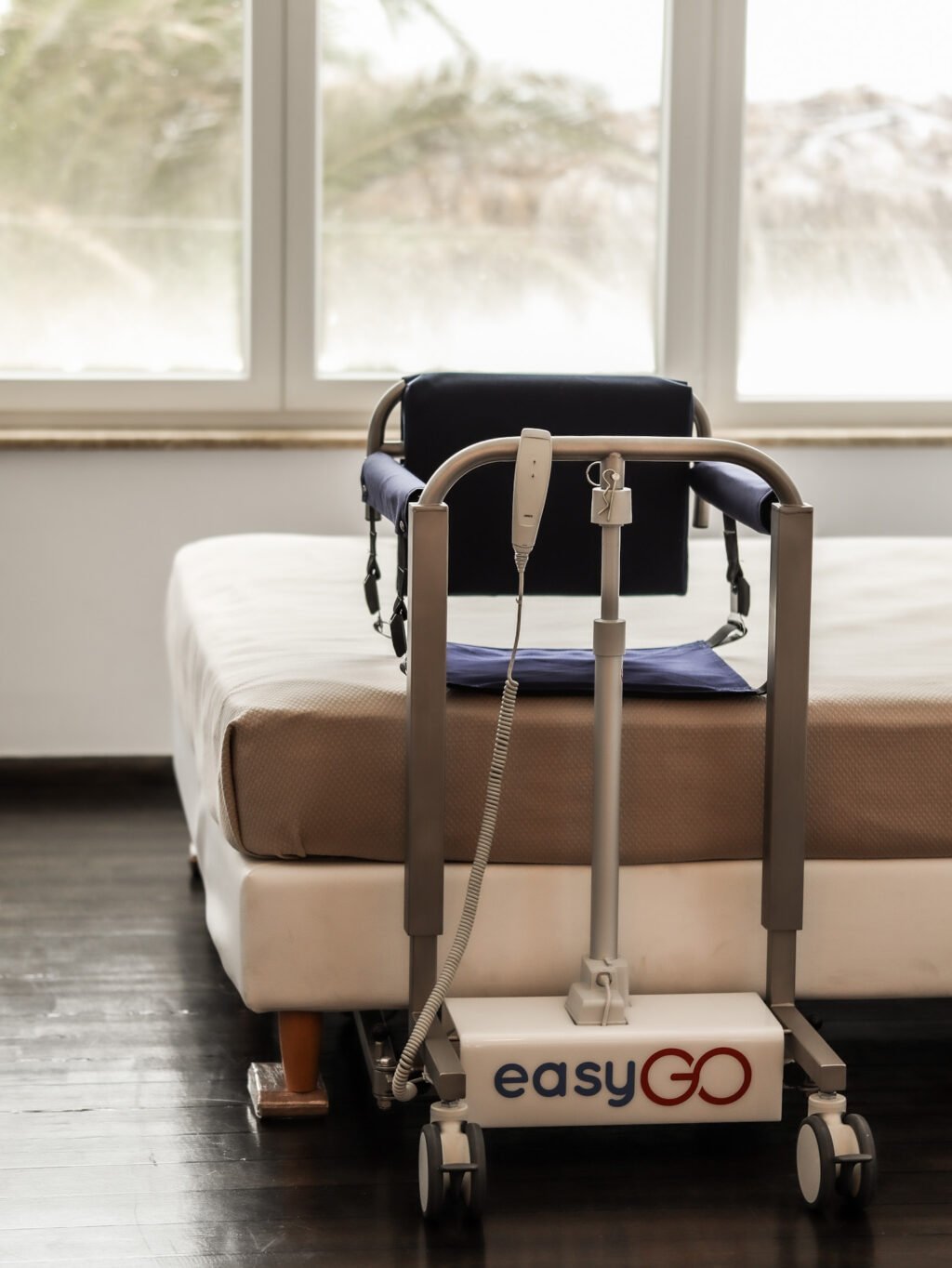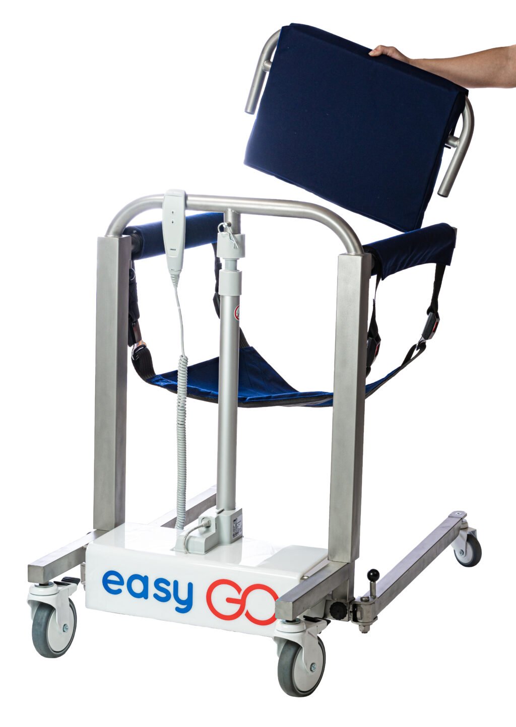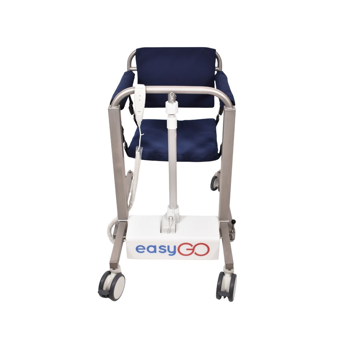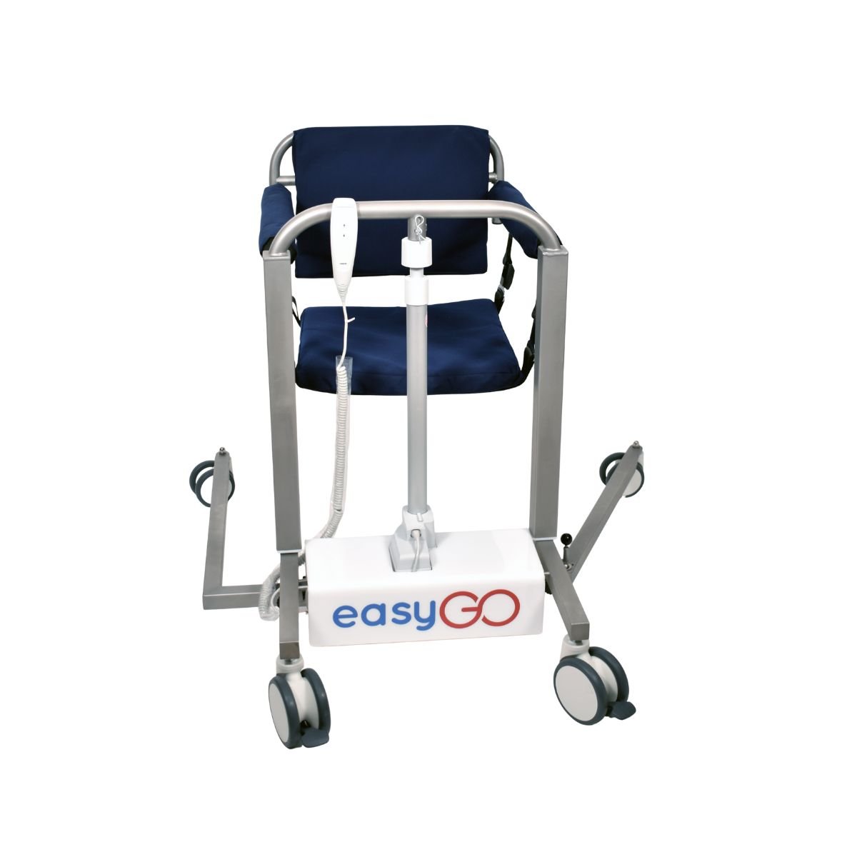 Η easyGO είναι μια πολυχρηστική τροχήλατη καρέκλα – γερανάκι με μοναδικό σύστημα ανύψωσης των ασθενών. Η easyGO διατίθεται με ηλεκτρικό μηχανισμό και επαναφορτιζόμενη μπαταρία. Σας επιτρέπει να ανασηκώνετε τον ασθενή με δύο μόνο κινήσεις και να τον τοποθετείτε στο κρεβάτι, το αναπηρικό αμαξίδιο, την τουαλέτα, το αυτοκίνητο ή οποιοδήποτε άλλο σημείο επιθυμείτε.