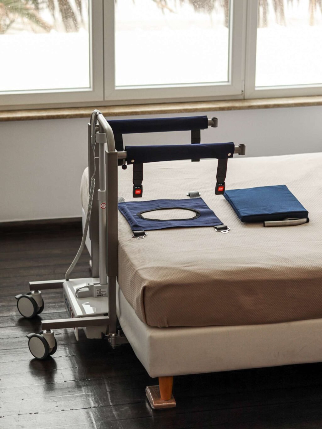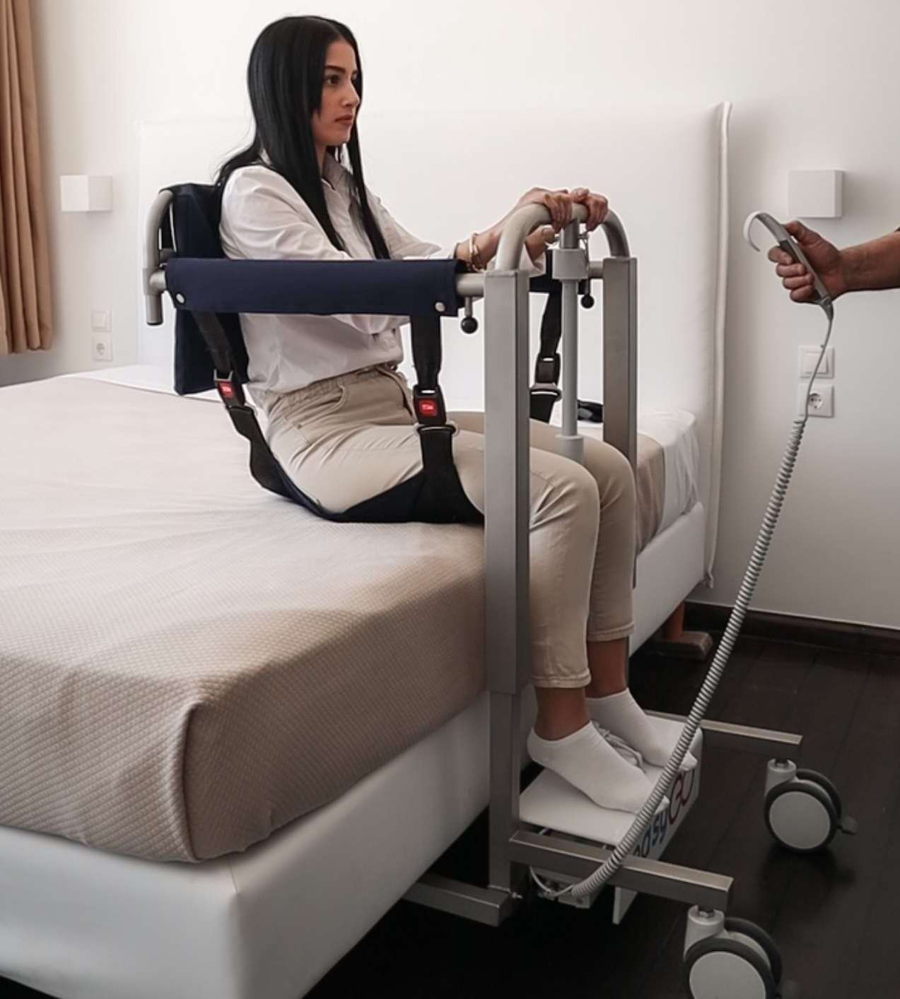 4) Θα βοηθήσει τα μέγιστα εάν ο χρήστης έχει μια στοιχειώδη στήριξη κορμού έτσι ώστε να μπορεί να σταθεί σε καθιστή θέση στο πλάι του κρεβατιού για λίγα δευτερόλεπτα