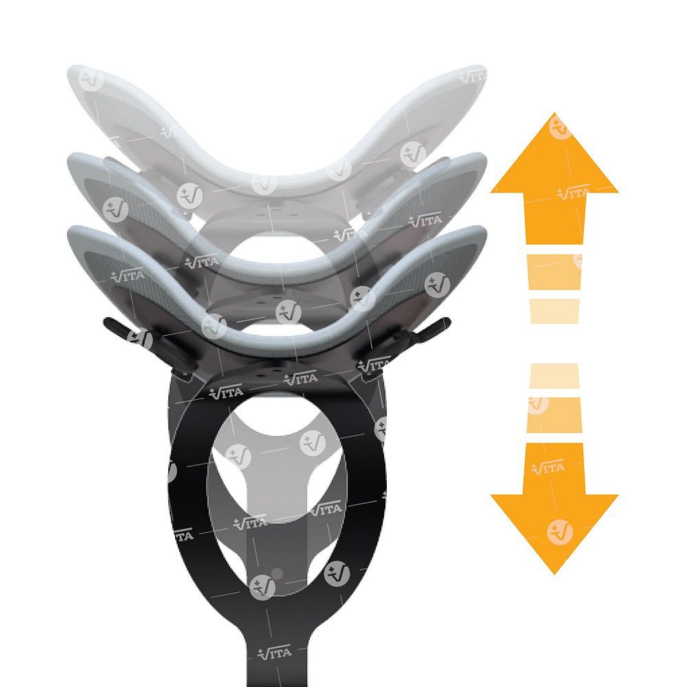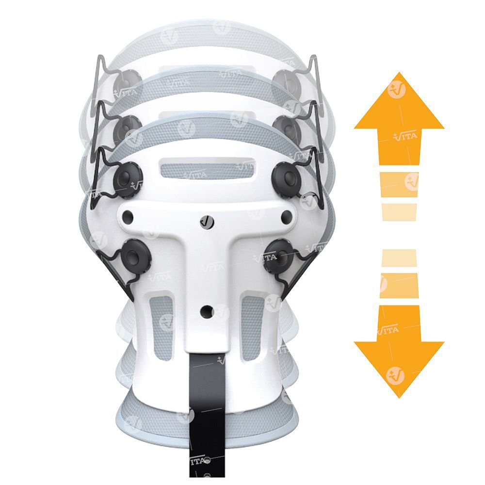 Κατασκευή από πολυαιθυλένιο, υψηλής ποιότητος και αντοχής. Εσωτερική υποαλλεργική επένδυση foam, προσθαφαιρούμενη και αυτοκόλλητη με velcro. Αεριζόμενη και αντιεφιδρωτική (πλένεται). Εφαρμόζει με αυτοκόλλητους και ρυθμιζόμενους ιμάντες με πλαστικές αγκράφες. Φέρει ενσωματωμένο μετωπιαίο ιμάντα ακινητοποίησης της κεφαλής. Το πρόσθιο σύστημα στήριξης της κάτω γνάθου, καθώς και το οπίσθιο, του ινιακού οστού, ρυθμίζονται σε θέσεις επιλογής. Το στήριγμα της κάτω γνάθου αφαιρείται εύκολα διευκολύνοντας τον ασθενή στη σίτιση.