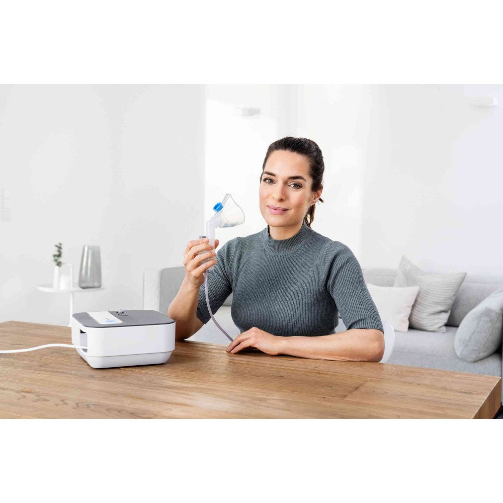 – σύντομος χρόνος εισπνοής - Σετ ατμοποιητή: Μπουκάλι νεφελοποιητή, επιστόμιο, προστατευτικό μύτης, ρινική πλύση, μάσκα ενηλίκων, παιδική μάσκα, σωλήνας πεπιεσμένου αέρα, γωνιακή εφαρμογή, 10 φίλτρα