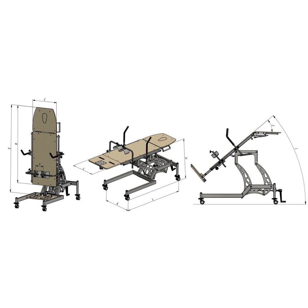 Ο ορθοστάτης δίνει τη δυνατότητα να υιοθετήσει είτε εμπρόσθια ή οπίσθια ορθοστάτηση ενώ επίσης μπορεί να χρησιμοποιηθεί ως κρεβάτι ή τραπέζι μασάζ.