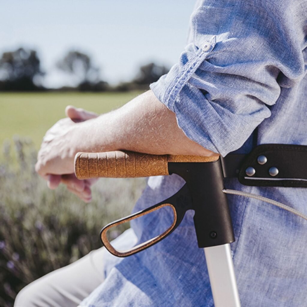 Η άνεση είναι ένα πολύ σημαντικό χαρακτηριστικό ενός crossover rollator. Οι λαβές ώθησης είναι κατασκευασμένες από φιλικό προς το δέρμα φελλό TPE και επομένως είναι αντικαραδασμικές, θερμοαπορροφητικές και αντιολισθητικές. Τα μεγάλα υποβραχιόνια, επίσης κατασκευασμένα από φελλό TPE, αποτρέπουν τους μώλωπες στους πήχεις όταν κάθεστε στον περιπατητήρα.