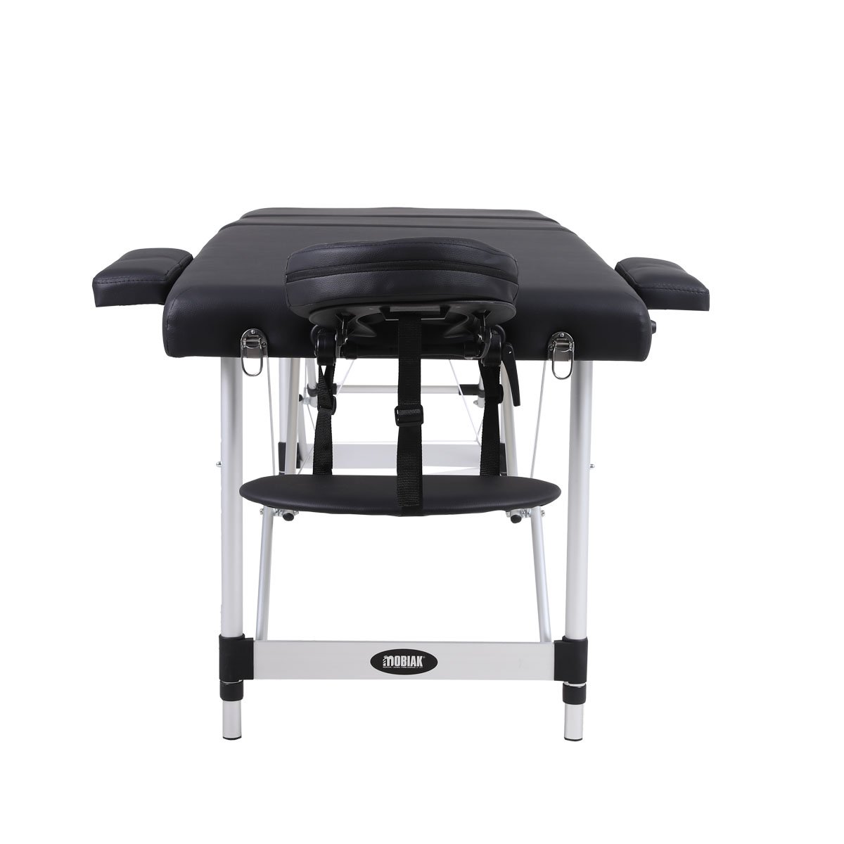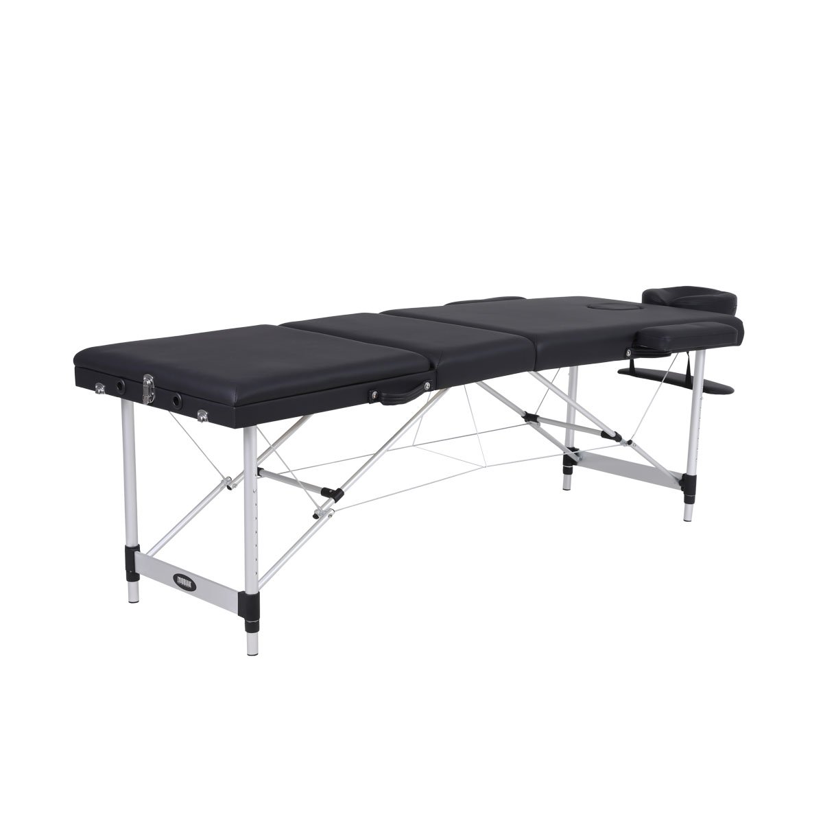 Πτυσσόμενο κρεβάτι μασάζ αλουμινίου 3 τμημάτων με αξεσουάρ – μαύρο (πλάτος 60cm) 0812305