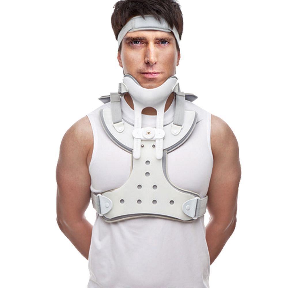 Ραχεοαυχενικός νάρθηκας από πολυαιθυλένιο, υψηλής ποιότητας και αντοχής. Εσωτερική υποαλλεργική επένδυση (foam), προσθαφαιρούμενη και αυτοκόλλητη με velcro. Αεριζόμενη και αντιεφιδρωτική (πλένεται). Εφαρμόζει με αυτοκόλλητους, ρυθμιζόμενους ιμάντες με πλαστικές αγκράφες. Φέρει ενσωματωμένο μετωπιαίο ιμάντα ακινητοποίησης της κεφαλής. Το πρόσθιο σύστημα στήριξης της κάτω γνάθου, καθώς και το οπίσθιο, του ινιακού οστού, ρυθμίζονται σε θέσεις επιλογής. Το στήριγμα της κάτω γνάθου αφαιρείται εύκολα διευκολύνοντας τον ασθενή στη σίτιση. Ο νάρθηκας εφαρμόζεται και σε ύπτια θέση. Συμβατός σε αξονική και μαγνητική τομογραφία.
